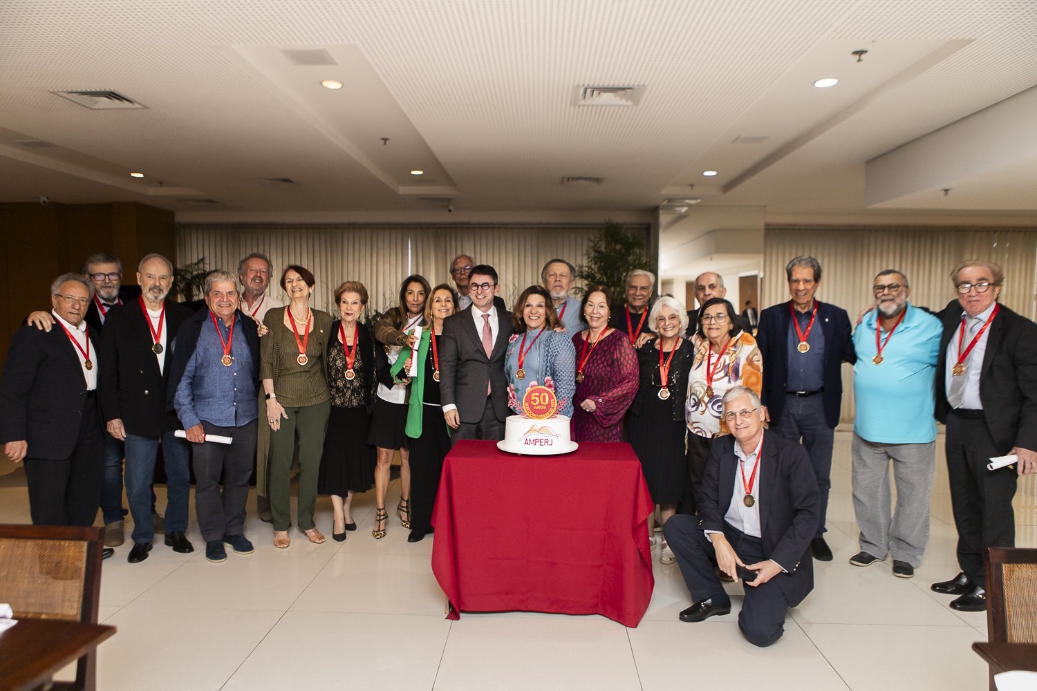 O ano de 2024 foi marcado por encontros, conquistas e celebração de datas simbólicas. A turma de 1974, uma das primeiras do Ministério Público do Estado do Rio de Janeiro, completou 50 anos de posse. Em comemoração organizada pelas diretoras Allana Poubel (Social) e Luiza de Mattos (Assistencial e Assuntos Relativos a Aposentados e Pensionistas) na sede da Amperj, os membros receberam medalhas da associação. O evento contou com a presença do presidente, Cláudio Henrique da Cruz, que parabenizou os colegas pela dedicação à instituição.